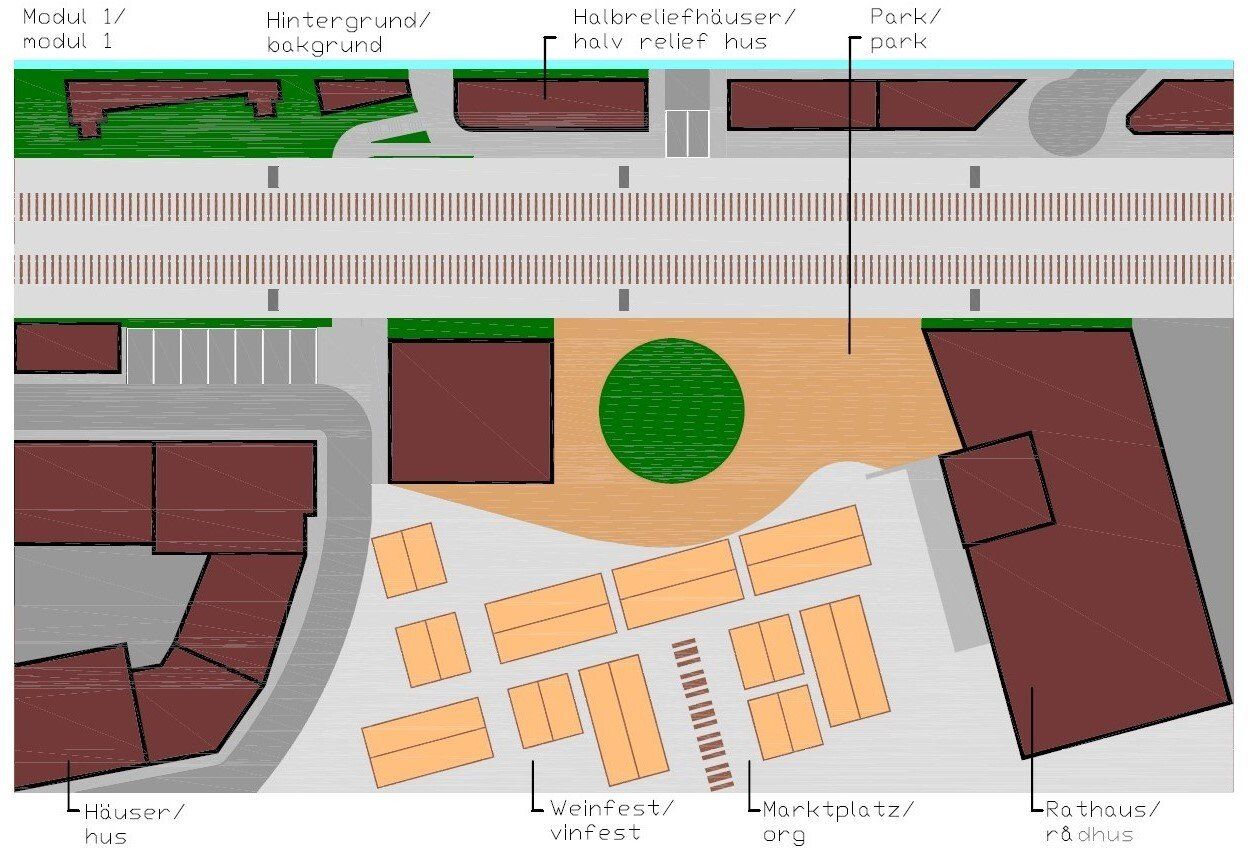 I fokus för denna modul är torget med vinfest. I bakgrunden (något förhöjd) kan man se en dubbelspårig räls. Bakom det är halv relief hus att se. Bakgrunden består av en träpanel som är målat och klistras med bilder. Till höger från stora torget är Heitlinger rådhuset, som ser ut som rådhuset i Stuttgart... På vänster sida finns det några radhus. Längre tillbaka ärt en liten plats med bänkar och en vackert, gammalt kastanjeträd.